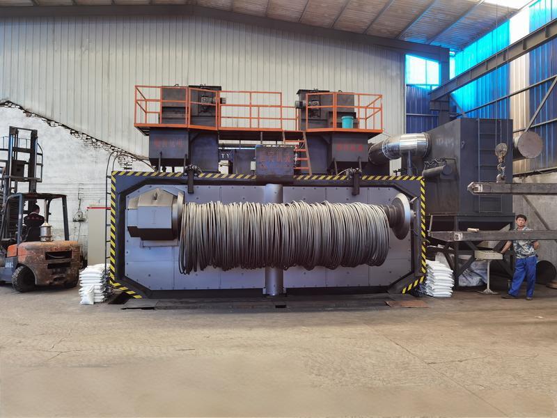 線材拋丸機(jī)集無酸洗、環(huán)保、節(jié)能、高效、使用便捷等優(yōu)點(diǎn)于一身,其主要功能是非酸洗清除線材表面的氧化皮、油垢及銹垢,使線材表面獲得均勻一致的金屬光澤以提高后期涂飾質(zhì)量及防腐效果。同時(shí)還具有消除線材內(nèi)應(yīng)力,提高線材表面抗疲勞強(qiáng)度,延長使用壽命等特點(diǎn),消除了線材酸洗除銹對環(huán)境造成的污染及對人身體造成的傷害。