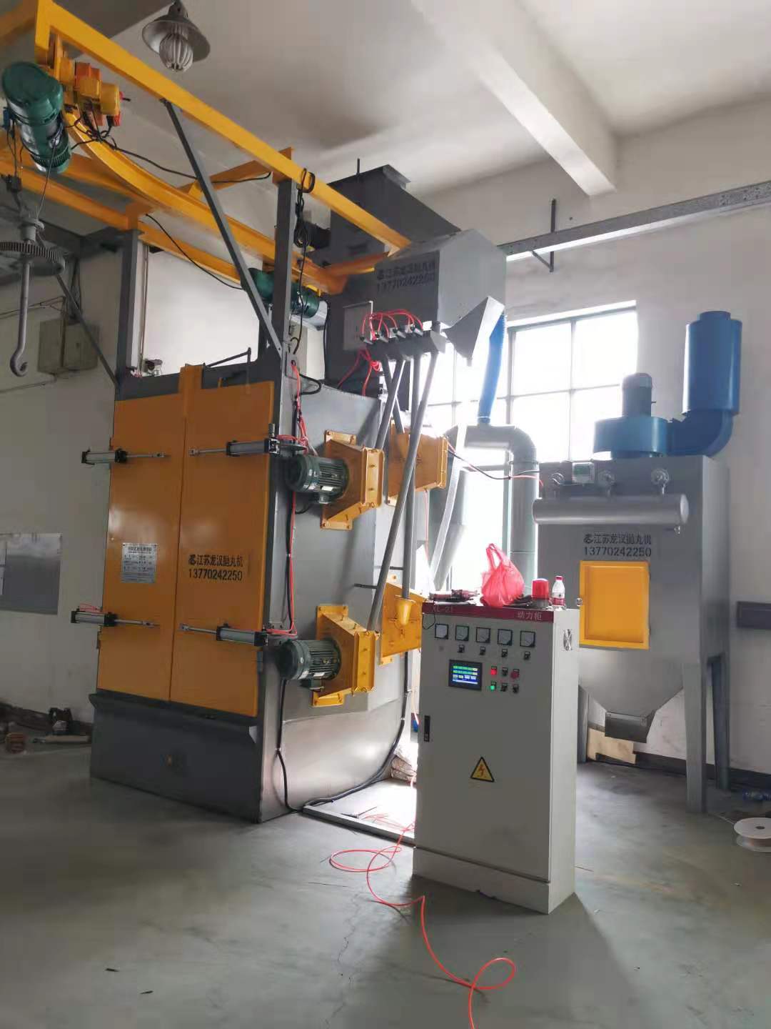 上海某實(shí)業(yè)有限公司,訂購一臺全自動雙吊鉤式拋丸機(jī),PLC一健啟動,觸摸屏控制,拋丸電機(jī)變頻調(diào)速,除塵風(fēng)機(jī)帶消聲裝置,降低設(shè)備噪音,設(shè)備不漏砂,不冒灰,適合不易翻轉(zhuǎn),怕撞易變形五金產(chǎn)品、鋁壓件產(chǎn)品拋丸表面處理!